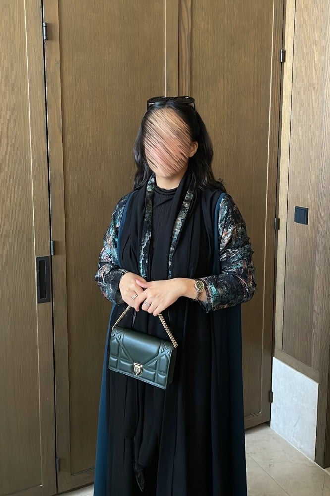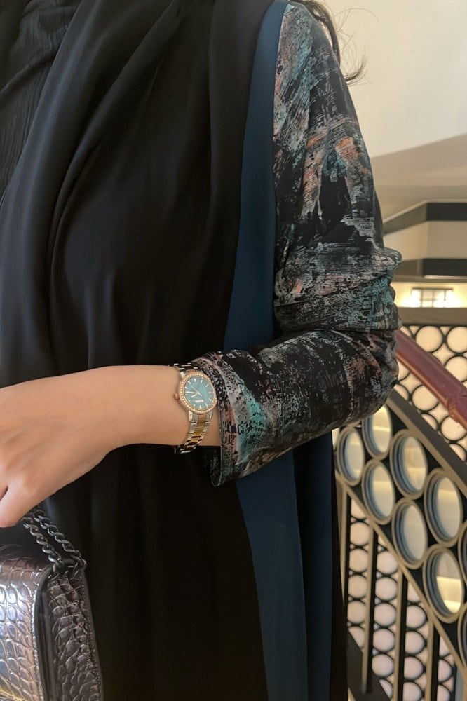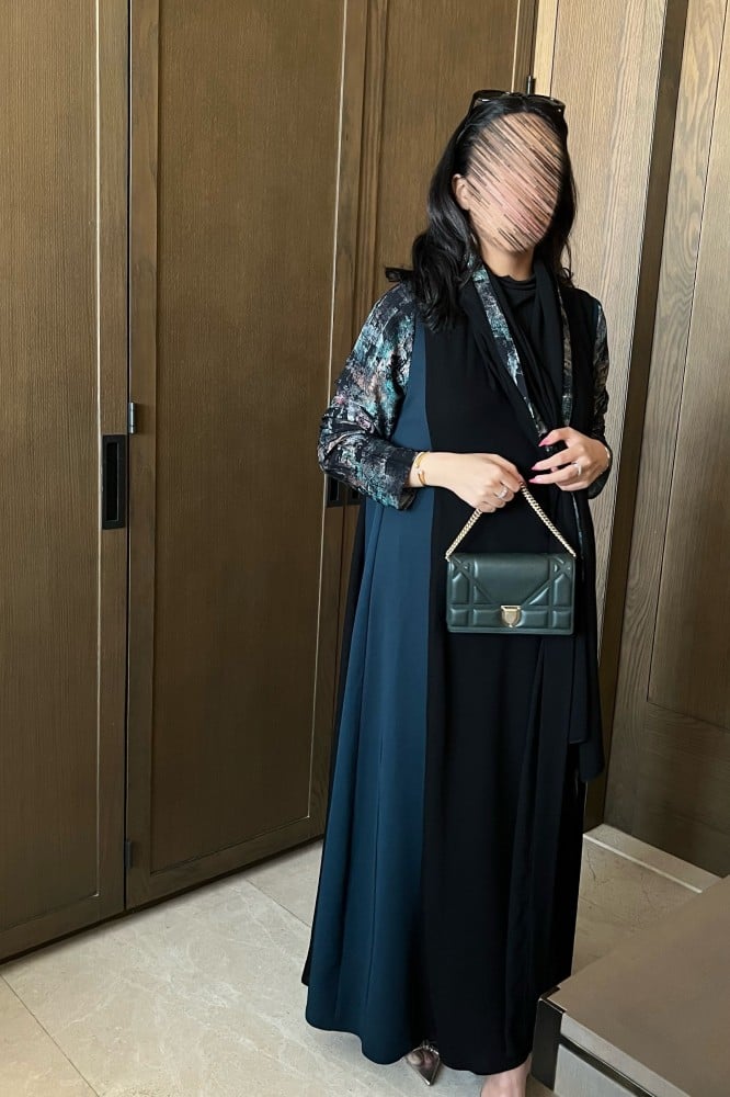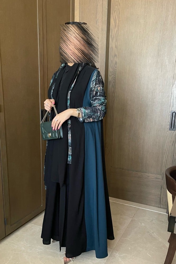 عباية كريب كلوش مع كم كريب مشجر وطرحة بطرف كم مشجر