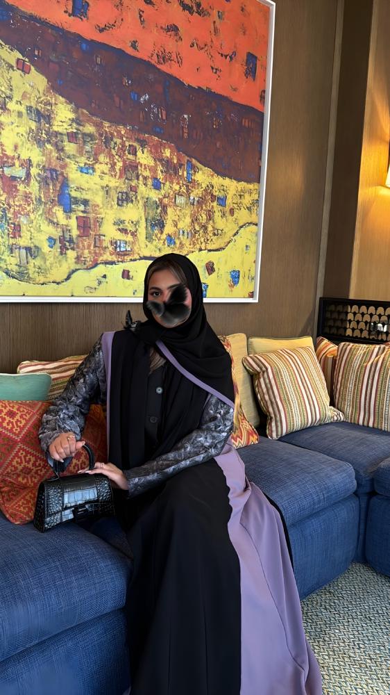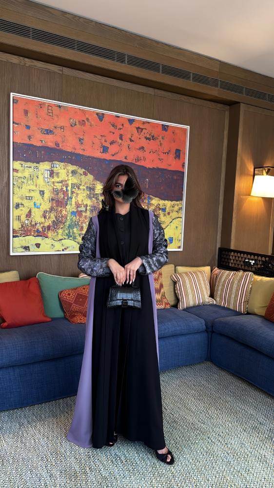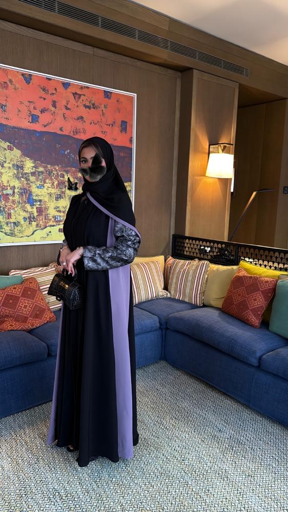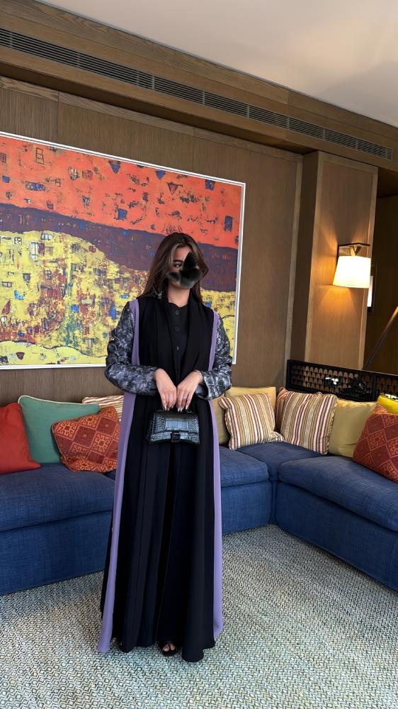 عباية كريب كوري خفيف وطايح نص كلوش مع تدخيلة قماش تفته وقماش كريب بنفسجي فاتح