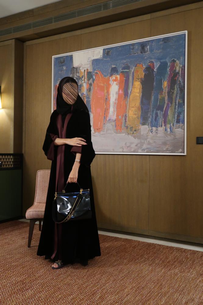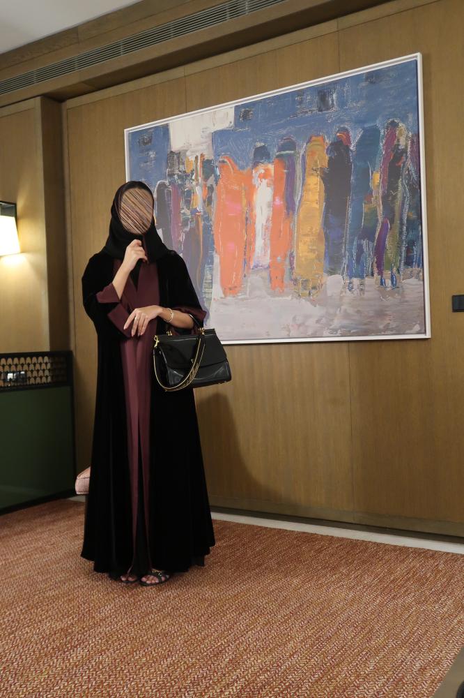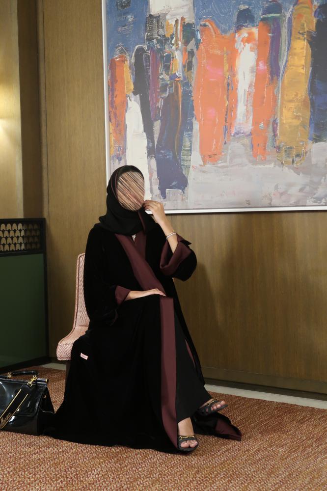 Black Korean velvet half-cloche abaya with crepe satin insert