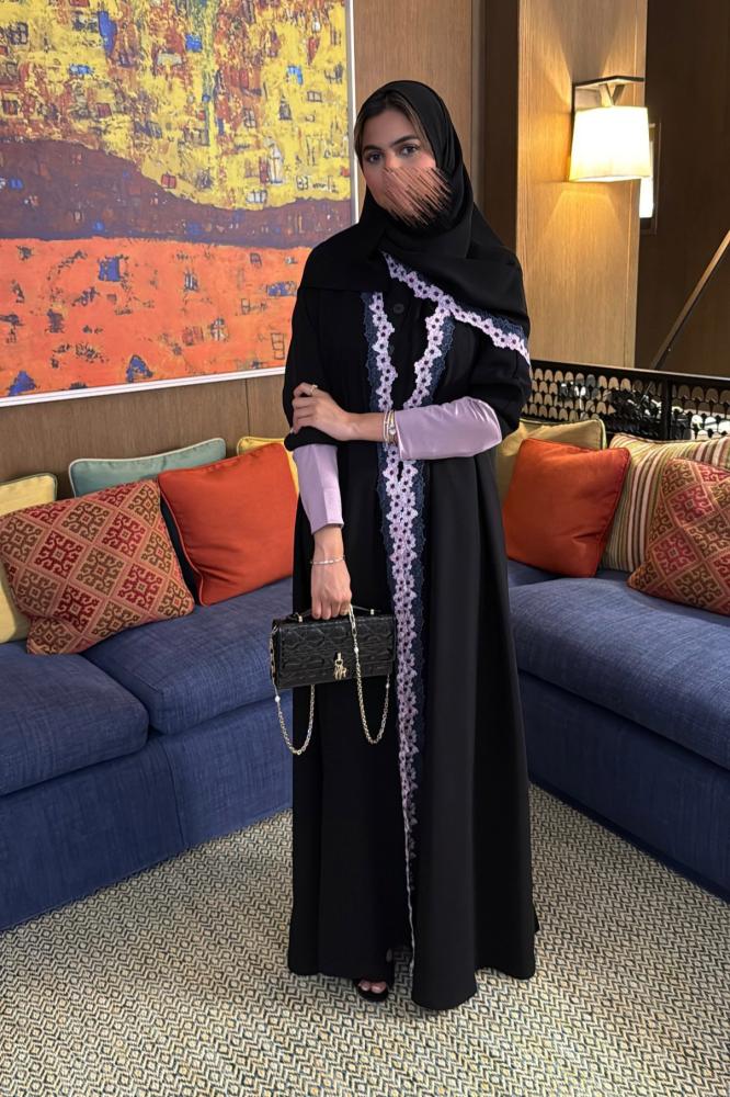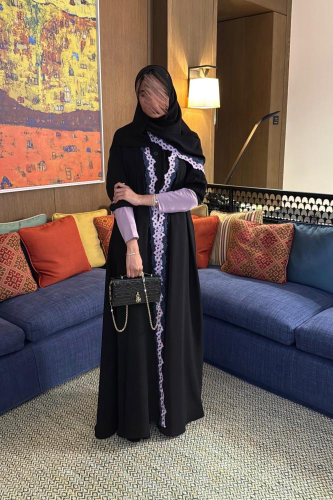 Light, black, Korean crepe abaya, semi-flattering, with a slit inset and stretch fabric