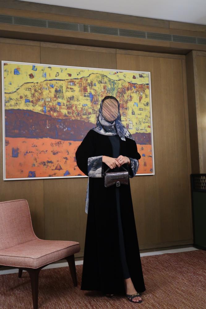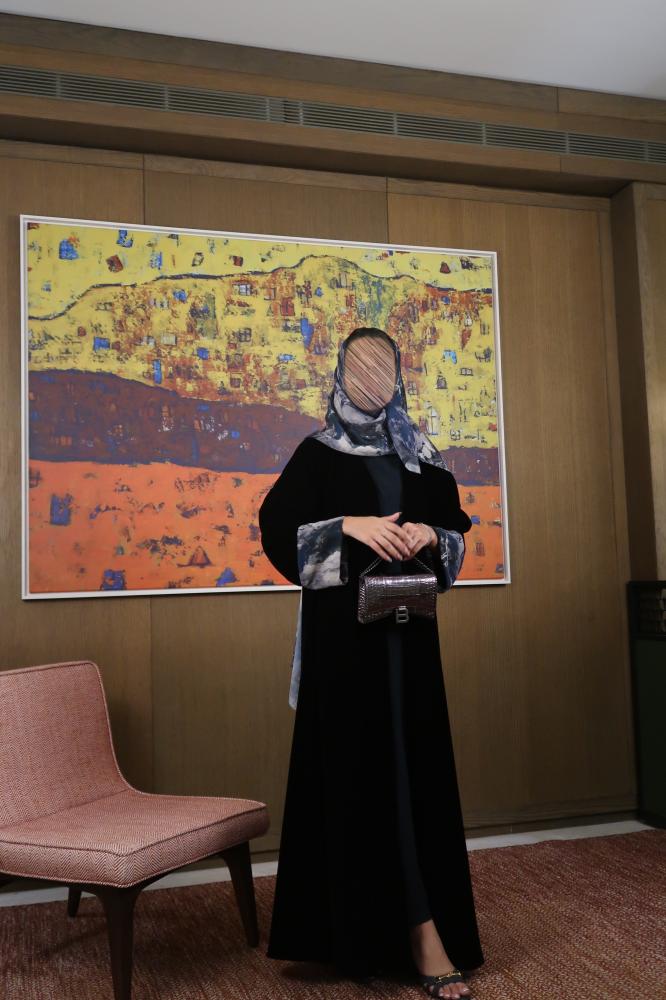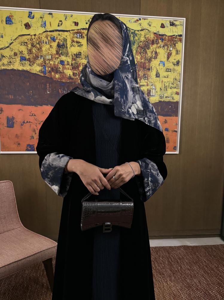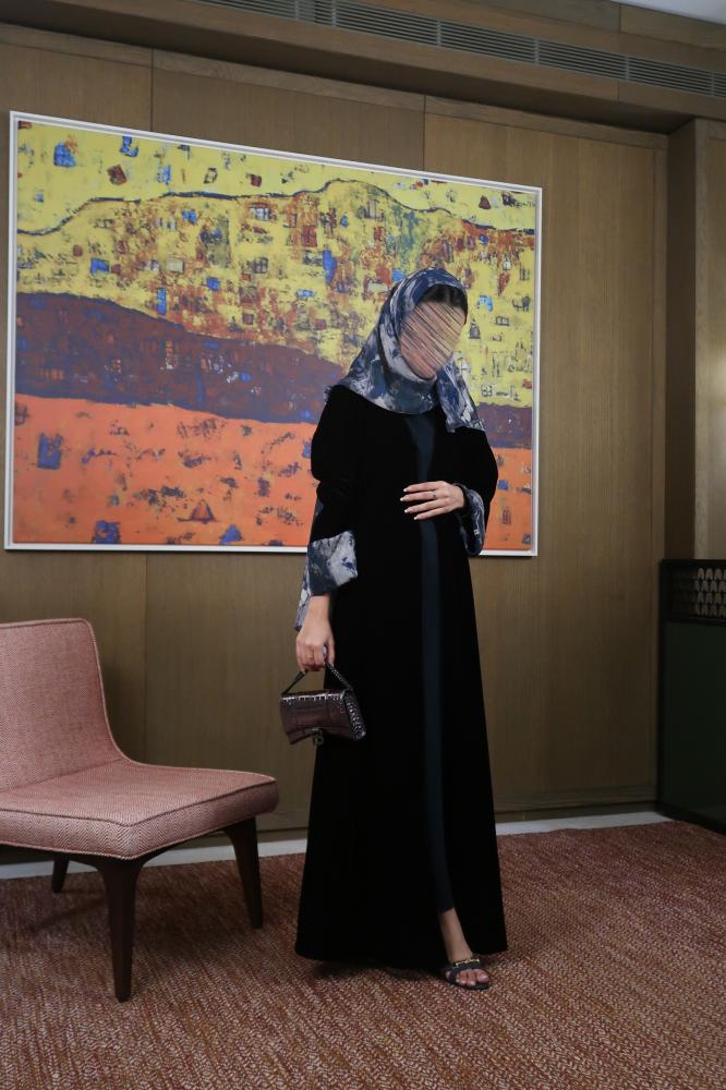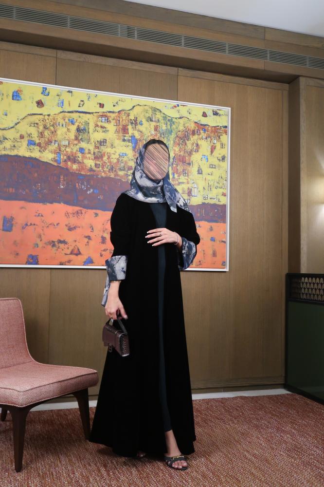 عباية مخمل كوري اسود نص كلوش مع شيفون