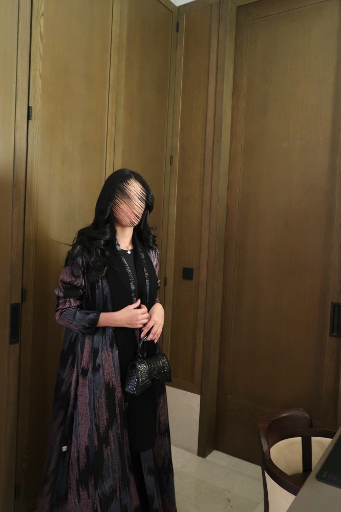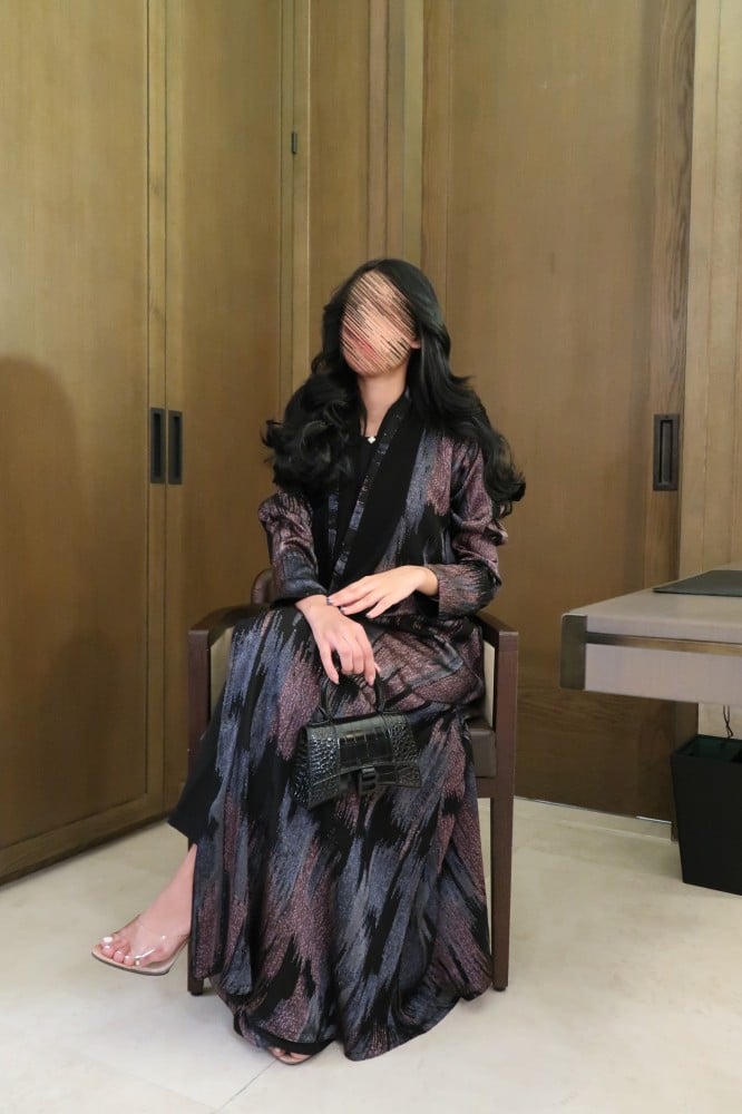- Half-cloche abaya, Indian opal chiffon, lined with black silk The order execution period is from 7 to 14 working days.