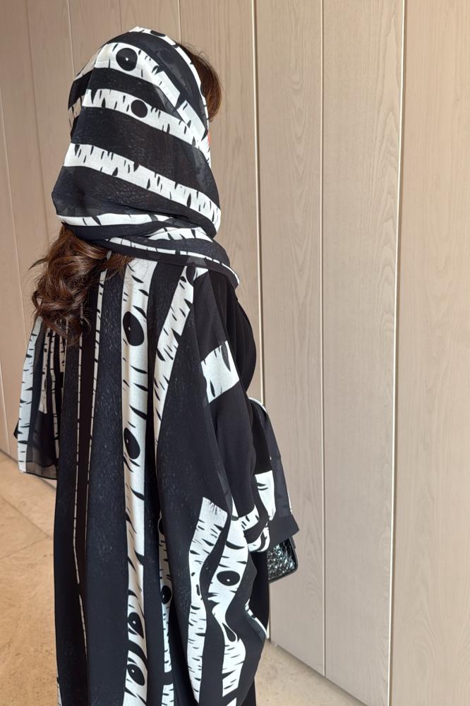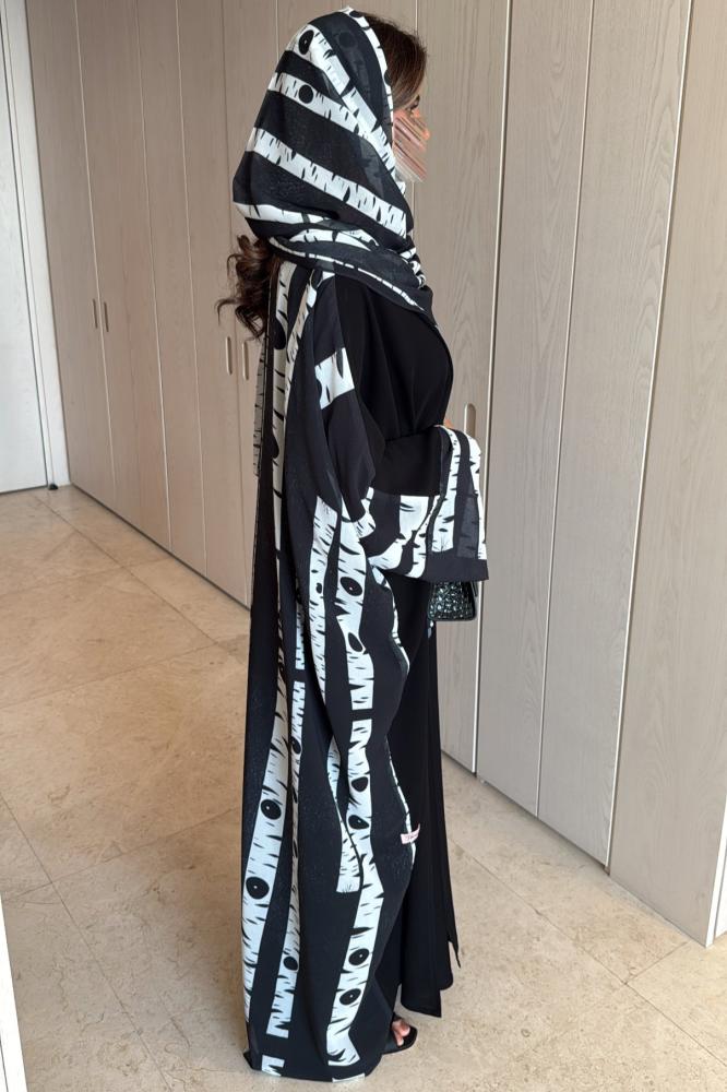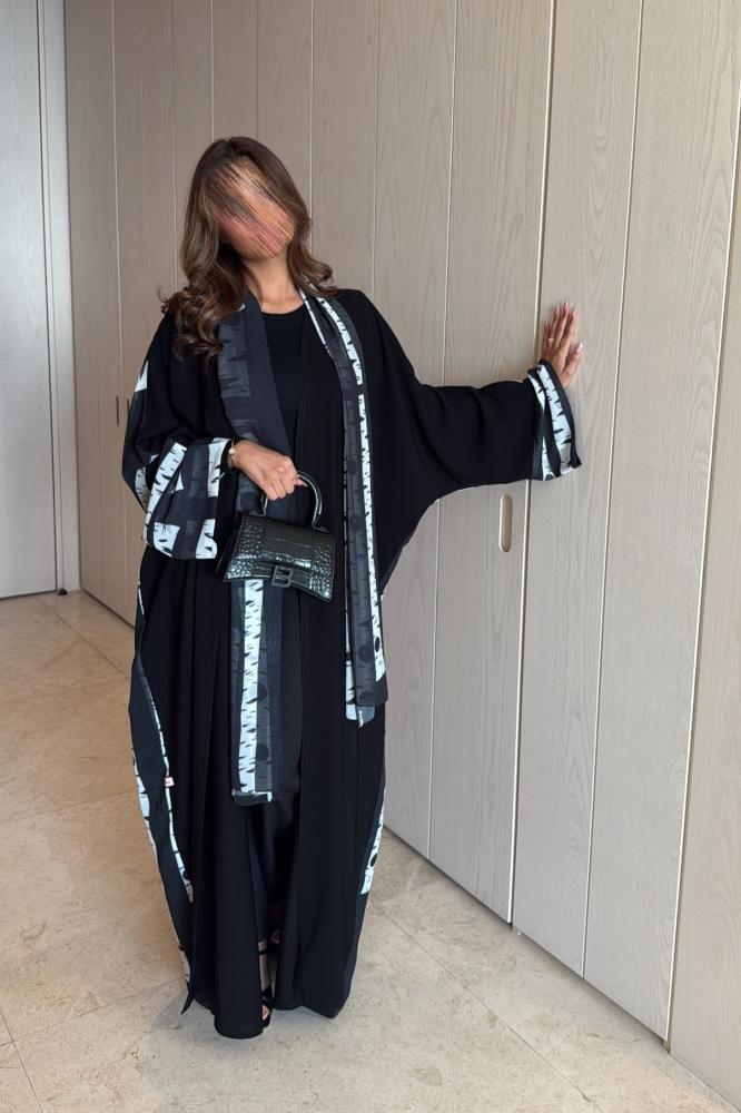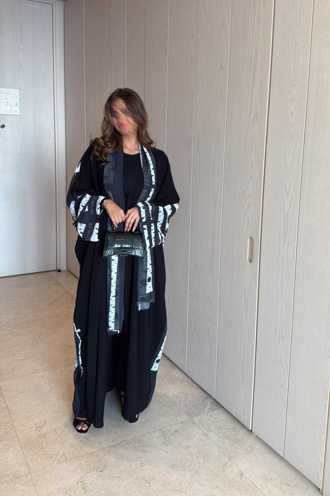 Light black Korean crepe abaya with a half-bisht and a chiffon lining